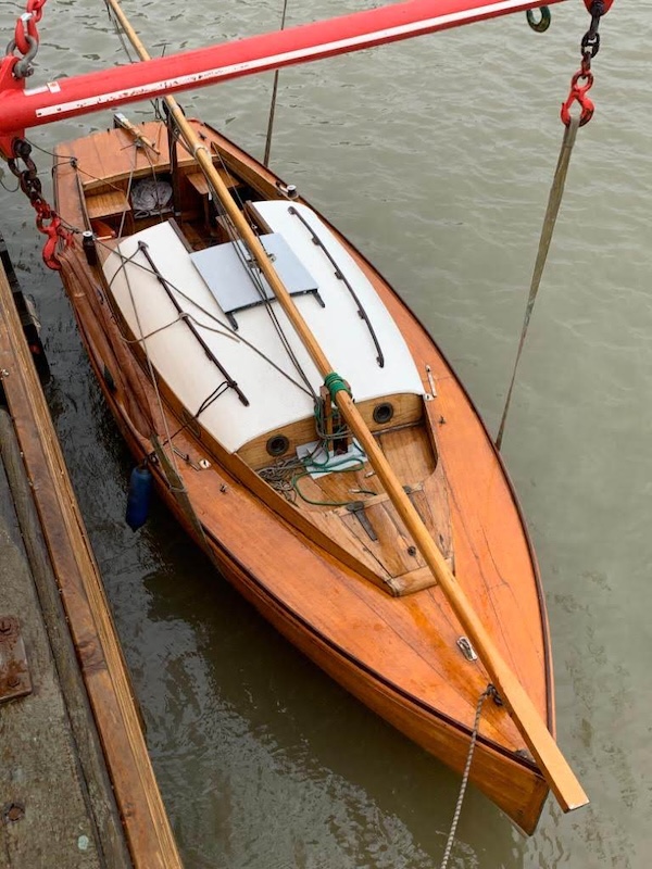 Klassischer 20er Jollenkreuzer aus Holz, gebaut 1955 in Stralsund als Eigenbau nach einem Entwurf von E. Höppner, Demmin. Das Boot ist untrennbar mit einer außergewöhnlichen Geschichte verbunden: Sein damaliger Eigner nutzte es zur Flucht aus der DDR über die Ostsee nach Dänemark – vermutlich 1958. Seitdem segelt das Boot in westdeutschen Gewässern. Seit 1989 im Besitz des jetzigen Eigners, der es durchgehend aktiv auf Elbe, Wattenmeer und der südlichen Ostsee gesegelt hat.