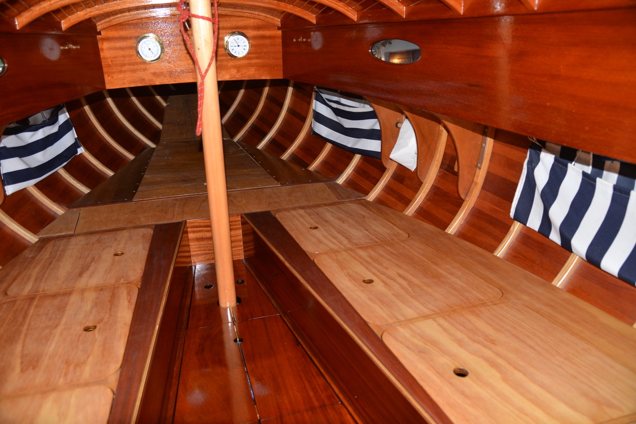 Baujahr 1969. Rumpf von Grund neu aufgebaut in 2000: Formverleimt auf den alten Spanten, keine Matte: Längsleisten, 2fach Diagonal, 1fach Längsfurnier, Kiel und Bodenwrangen ausgetauscht. Der Rumpf ist absolut dicht, steif und pflegeleicht. Holzmast.