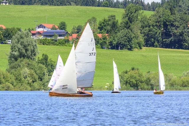 Die J-Jolle (22m² Rennjolle) wurde 1924 mit dem Segelzeichen J 372 von Cäsar Fuhlendorff in Hamburg konstruiert und gebaut. LxB=5.90x1.80m, Eigengewicht 510 kg, Tiefgang 20-100cm. Unter dem Namen TEUFEL erfolgreiches Regattaboot in den 30er Jahren auf Elbe und Alster. Nach Restaurierung in den 80ern unter dem Namen SIR WILLY VON OTTENSEN als Tourenboot auf Elbe, Ost- und Nordsee unterwegs. 2007 ging die J-Jolle nach Süd-Deutschland, wo sie von ihrem damals neuen Eigner, einem Goldschmied, über 2 Jahre aufwendig restauriert wurde. Seitdem heißt sie FEUERVOGEL, wie der Phönix aus der Asche mit entsprechender Bronze Gallionsfigur. Jeden Winter bekommt sie seitdem die notwendige Zuwendung und segelt im Sommer im Allgäu am Rottachspeicher. Zur Zeit liegt sie auf ihrem Trailer in Kempten in einer Halle und wartet auf neue Eigner, die sie genauso liebevoll pflegen und segeln wie in all den Jahren zuvor.