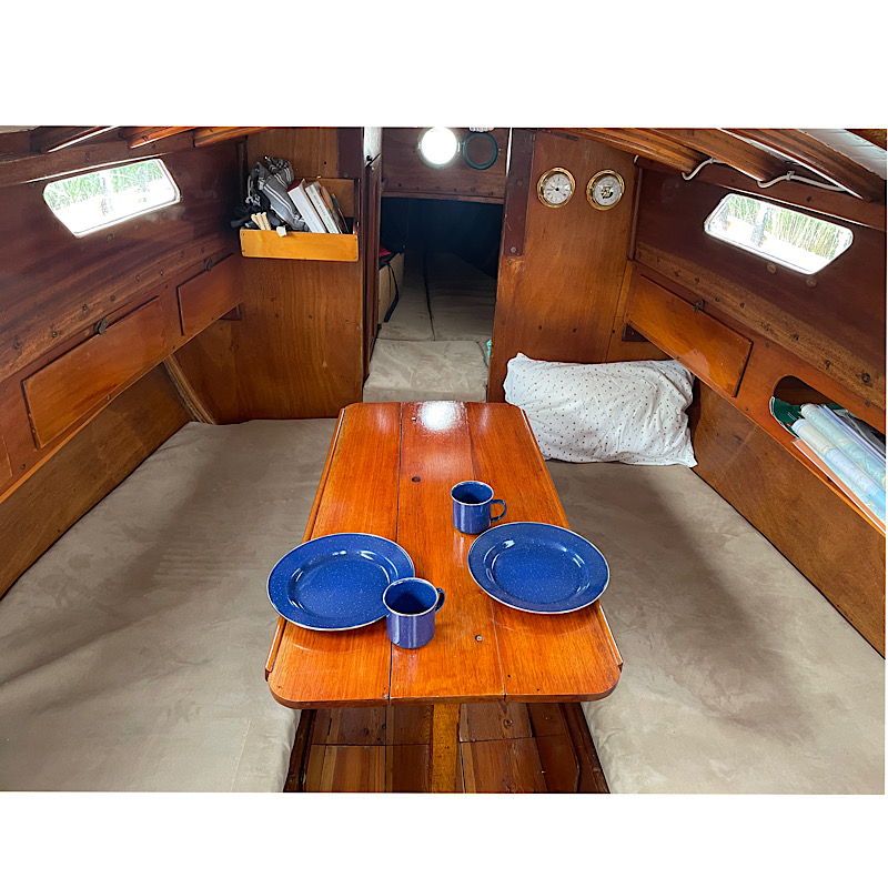 Davor: Deck und Kajüte neu beschichtet, neue Winschen, neue Blöcke, neue Polster, neue Leselampen, neuer Motor und neue Welle.