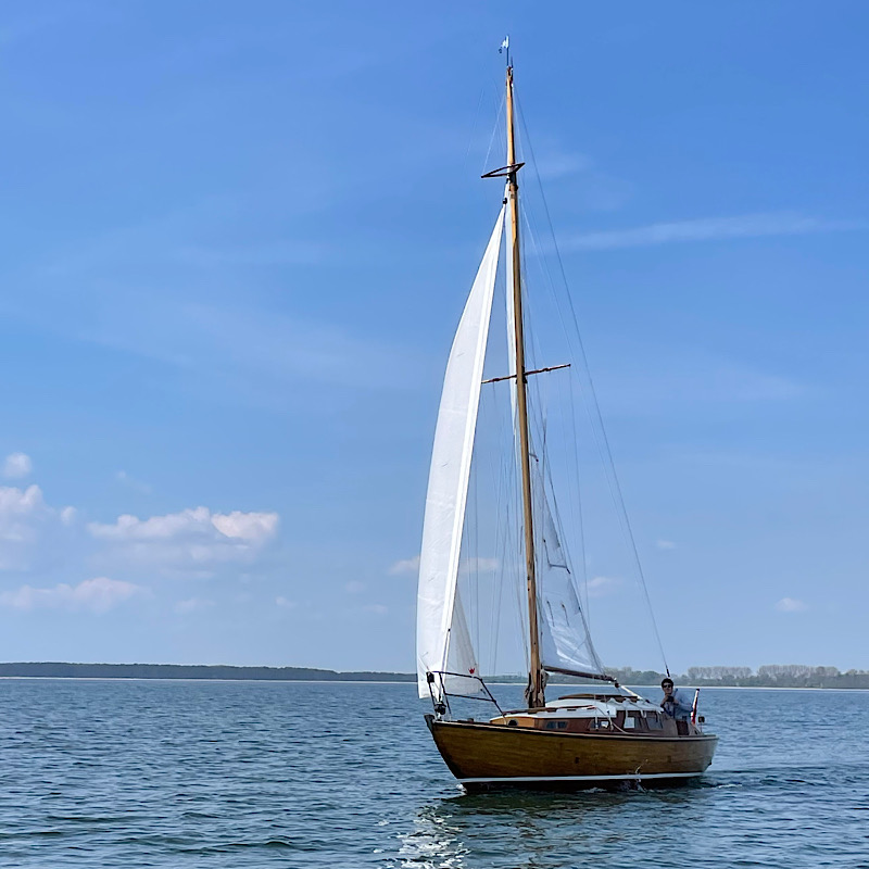 Die Shanty segelt wirklich toll, kommt hoch an den Wind, lässt sich auch von kurzen Boddenwellen nicht ausbremsen und ist auch bei viel Wind (auch Einhand) sehr gut handelbar.