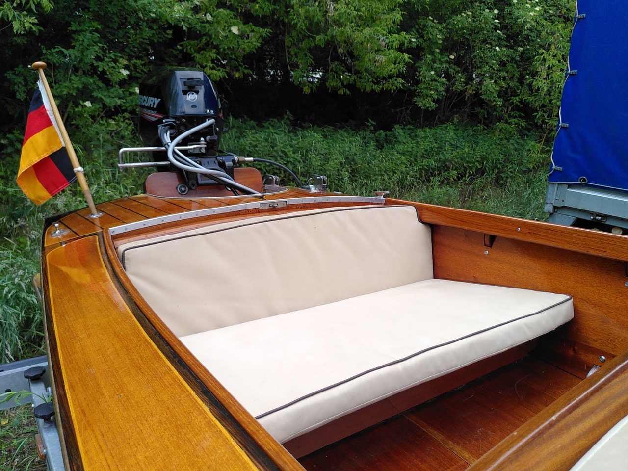 Wir verkaufen unser sehr gepflegtes Mahagoni Motorboot aus dem Jahre 1968 . Das Boot hat eine Länge von 3,50 und ist ein kleines „Leichtgewicht“.