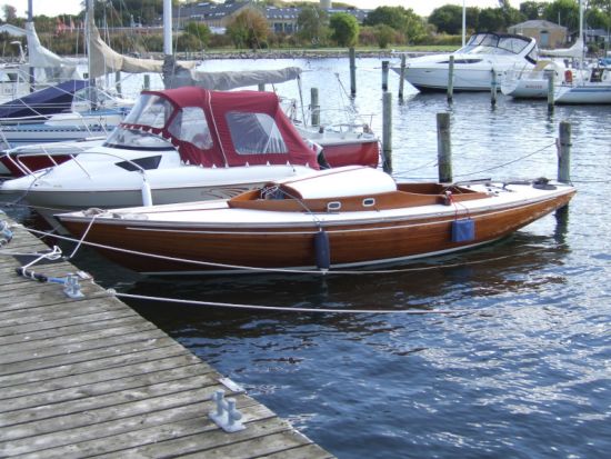 Mahagoni auf Eiche, diverse Planken und Bodenwrangen erneuert lt. Fotodokumentation. Ausgeleistet bis unter die Wasserlinie. Auf der stb.-Seite kleinere Trocknungsrisse in der Oberfläche, die mit einfachen Mitteln behoben werden können.