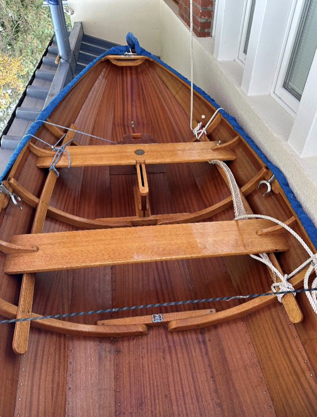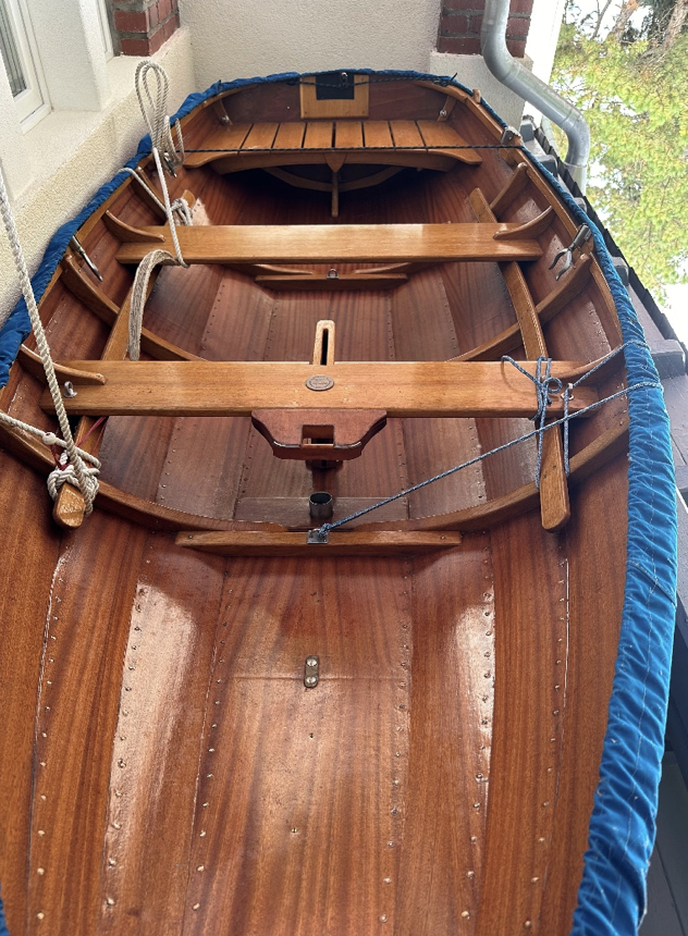 Mahagoni-Sperrholz mit Eiche Spanten, Klinkerbauweise vernietet mit Kupfernieten