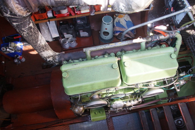 Motor/Antrieb 4-Zylinder Dieselmotor Mercedes Benz mit 12 l Hubraum, Leistung 90 PS über Hydraulikgetriebe (Lohmann und Stolterfoth, Witten/Ruhr) auf Propeller mit Durchmesser 1,10 m