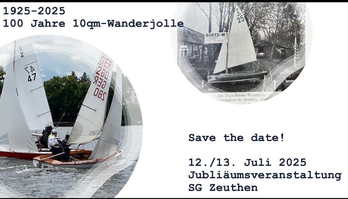 wir (eine Gruppe aktiver z-Jollen-Segler, www.zjolle-class.de ) haben uns in den Kopf gesetzt, am 12./13. Juli 2025 das 100jährige Jubiläum der 10qm-Wanderjolle zu feiern, anlässlich der Normierung dieser Klasse 1925 vom Deutschen Seglerbund und vom Freien Segler Verband (s. Ankündigung).