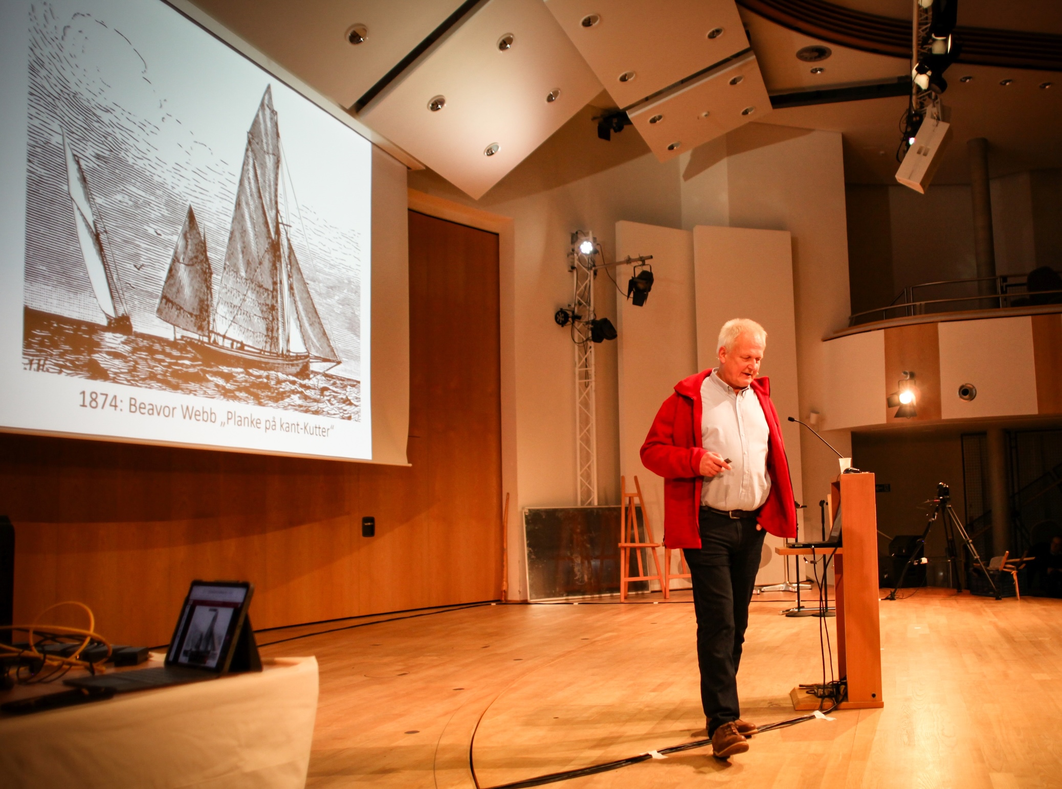 Das Symposium wurde mit dem Themenblock Yachtkonstruktion eröffnet. Hier gab es in der Vergangenheit schon eine ganze Reihe von Vorträgen zur Entwicklung der klassischen Yachten sowie Einblicke in moderne Konstruktionsmethoden zur Verbesserung der Performance, zum Interieur klassischer Yachten, Auslegung der Riggs, Segelentwicklung, zur Entstehung von Rissen und im letzten Jahr zu den Schlepptank-Versuchen von Watson ab 1900.