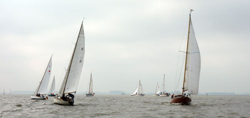 Das Glück ist mit dem Tüchtigen! Zumindest für die aus Hamburg anreisenden Boote wie unseres steht am Freitag ein herrlicher Ostwind über der Elbe. Mit leichter Segelgarderobe auf zum traditionellen Sundowner in Brunshausen. Und auch am Sonnabend weht schöner Nordost, fast „op-un-dol“, der zum vorgesehenen Starttermin leicht aufbrist. Das Führungsschiff startet bei der Störmündung zunächst mit Mittelgenua, zeitweilig kurz vorm Reff, auf eine Kreuz mit langen Beinen rund Pagensand-Süd ins Nebenfahrwasser. Fast 30 Schiffe sind es, die im Flutstrom folgen. Bei einer solchen Wetterlage wird sich nichts geschenkt! Die Sonne kommt raus. Just bei Ankunft des Feldes vor der Pinnau ist die Flut trotz des Ostwindes weit genug aufgelaufen, damit der Dockhafen hinter dem Sperrwerk öffnet. Wir werden schon an der Einfahrt zu dem idyllisch gelegenen Hafen begrüßt. Der Verein gibt für uns wirklich alles! (www.seglervereinigung-pinnau.de) Abends mit Grill und Bier auf der Terrasse und als es später herbstlich-kühl wird mit Lagerfeuer. Am Sonntag ist Brötchenservice vor Ort und anschließend reichlich Zeit zur Rekonvaleszenz und nettem Klönen. Wanderungen von Schiff zu Schiff. Nachmittags öffnet das Sperrtor. Tränen des Abschieds. Die Rückfahrt wird versüßt durch Fahrt in der Haseldorfer Binnenelbe. Später, als wir im Auto sitzen, beginnt es lange und ergiebig zu regnen. Was für ein schönes Wochenende! Ulrich Körner, Fotos: Jan op de Hipt
