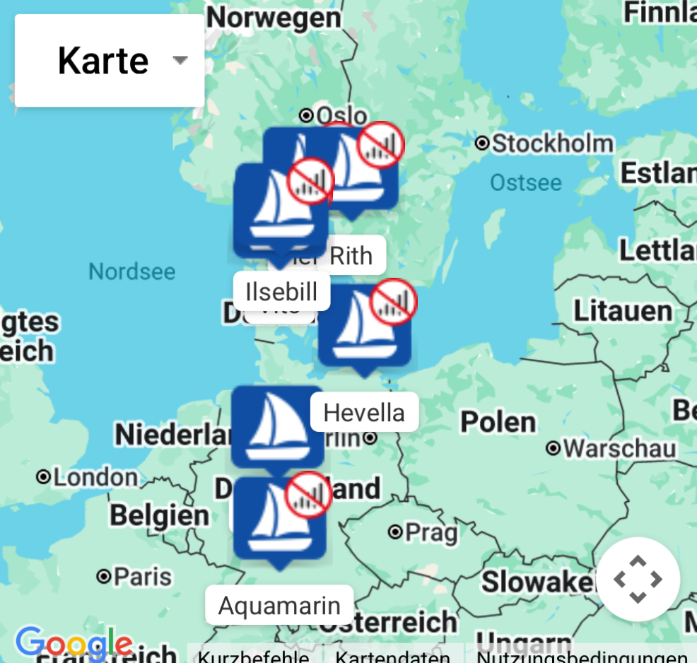 Für die App-Adminstratoren gibt es eine Übersichtskarte, dort sehen wir, dass sich immer wieder "Yachten" anmelden: