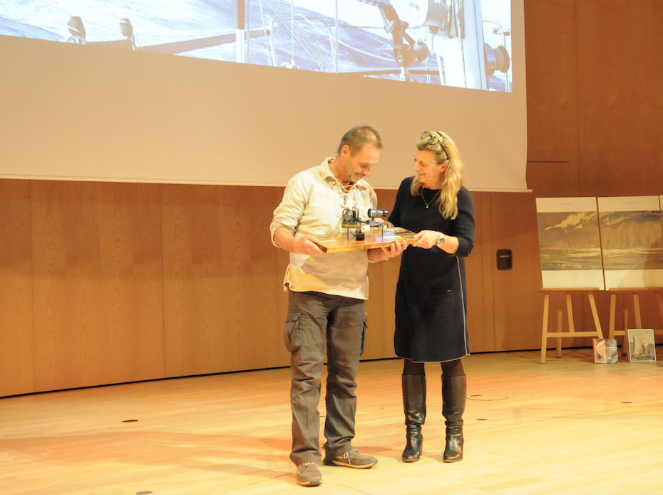 Michael Sinzel war weit unterwegs mit seiner über 100 jährigen Oertz Yawl Pantagruel und hätte sie vor 2 Jahren in einem Zyklon auf den Fidschis fast verloren. Dana Göbel hat ihn in Valenzia aufgespürt und mit dem Langfahrtpreis nach Hamburg gelockt. Locker, lustig und charmant hielt sie ihre Laudatio und beim Bierdeckel-Interview im Ina Müller Stil warf sie Micha die Bälle zu, auf die er bestens ansprang. So manch einer wurde nachdenklich bei dem Gedanken an ein einfaches freies Leben mit wenigen Ansprüchen an Bord auf Langfahrt.