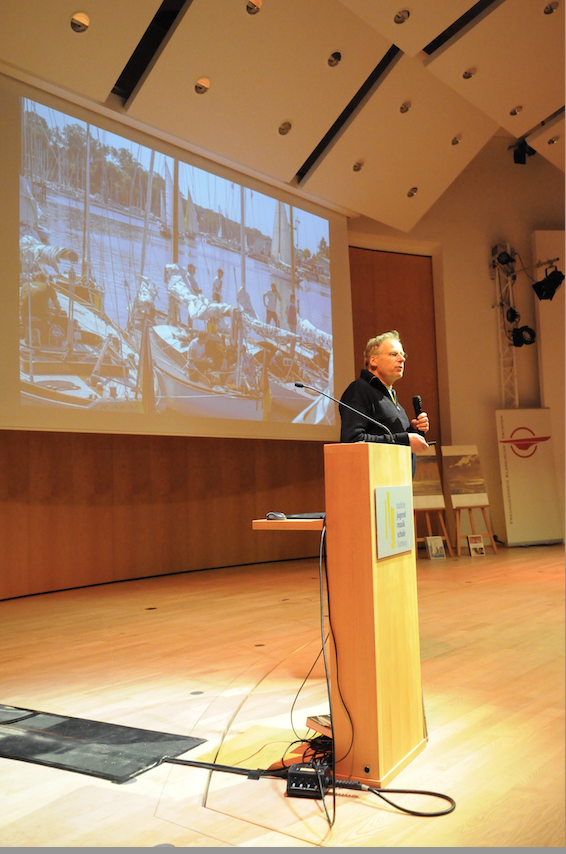 Weiter ging es mit einem echten Highlight: Nina Rydahl Andersen stellte ihr Buch vor, auf das viele Liebhaber dänischer Bootsbaukunst lange gewartet hatten: Ebbes Bootswerft in deutsch und dänisch. Vater und Mutter saßen im Publikum und waren sichtlich gerührt, wie fröhlich ihre Nina in bestem englisch über ihre Kindheit und Jugend in der Marstaler Bootsbauerfamilie plauderte. Der Saal war begeistert.