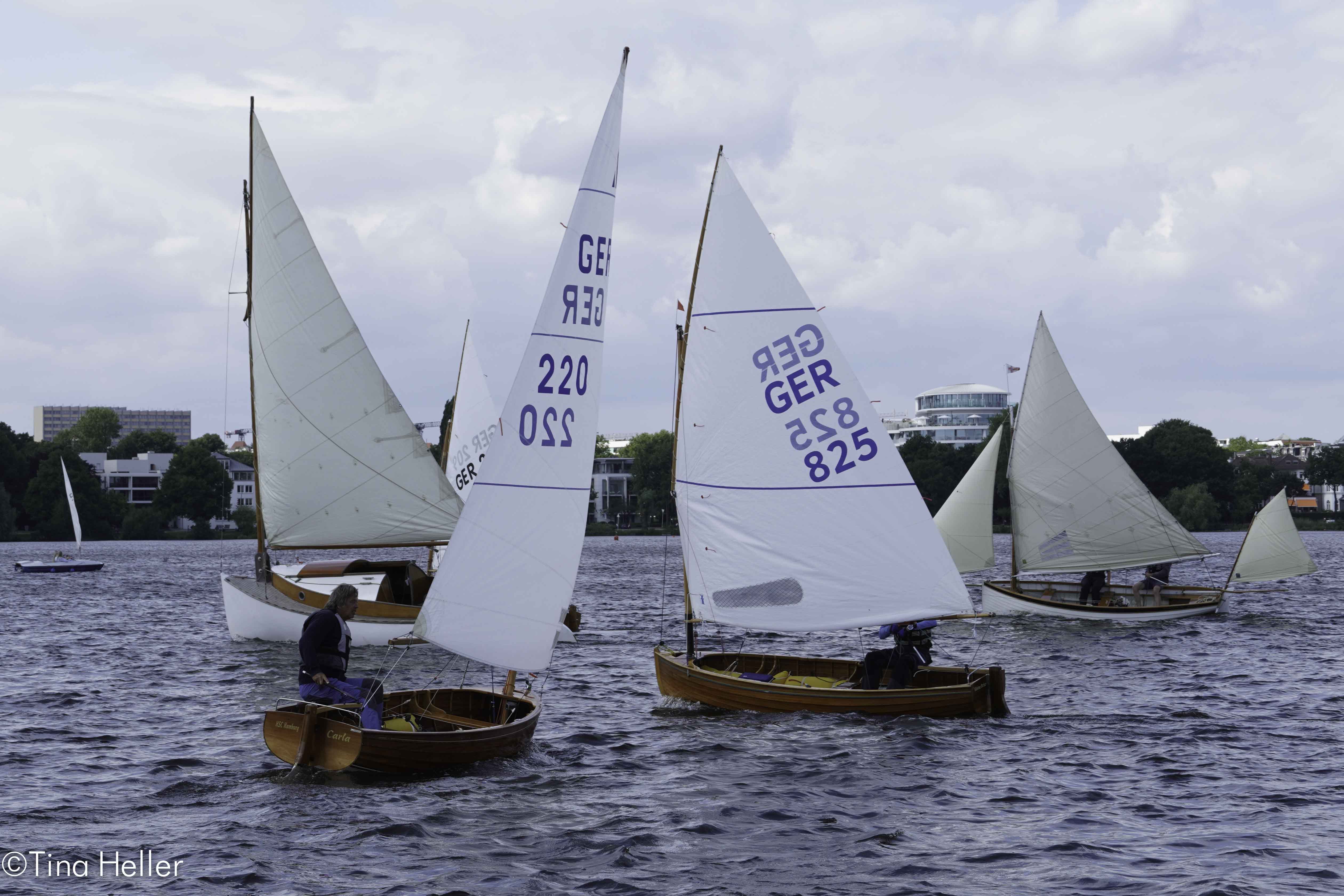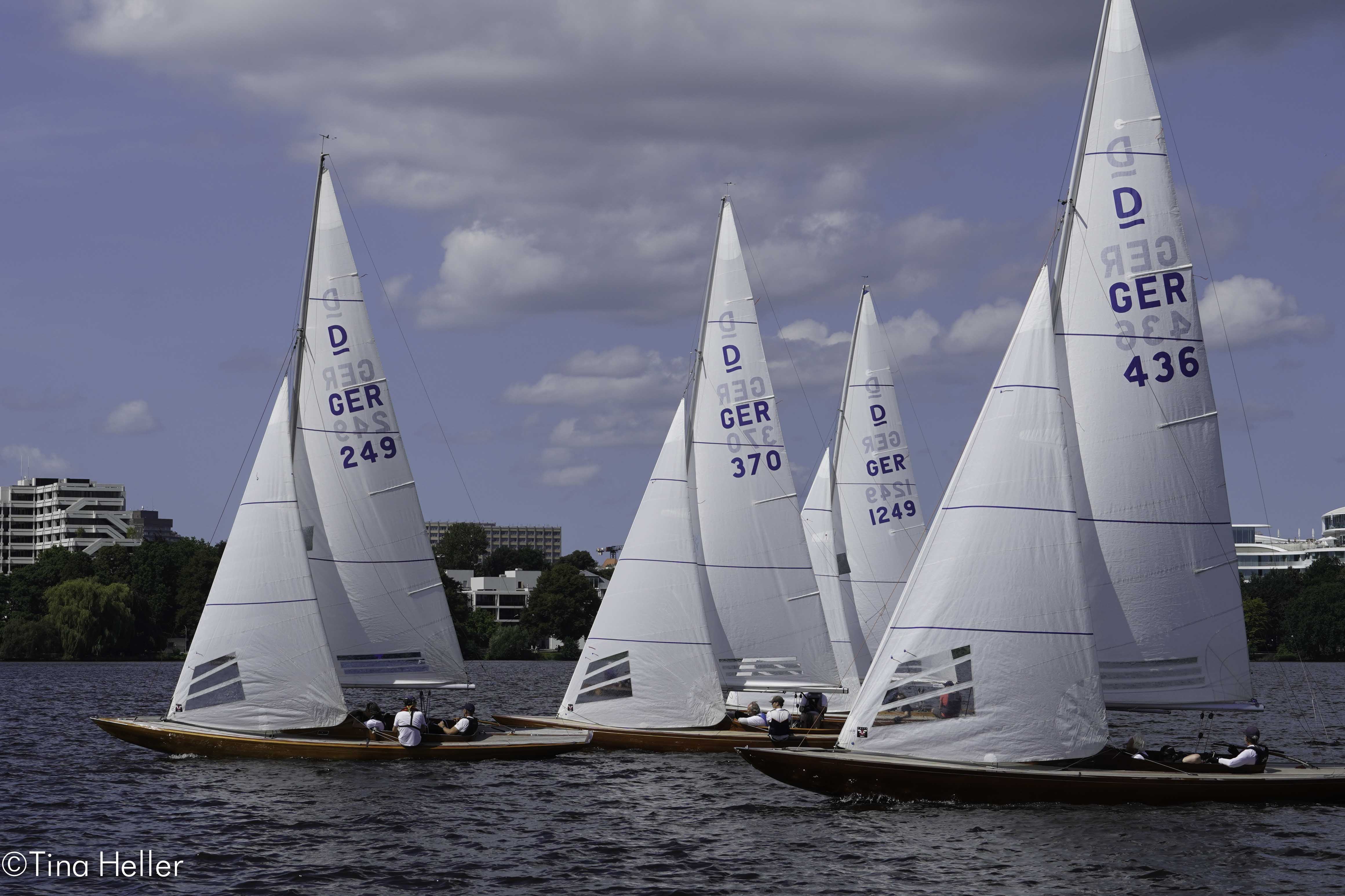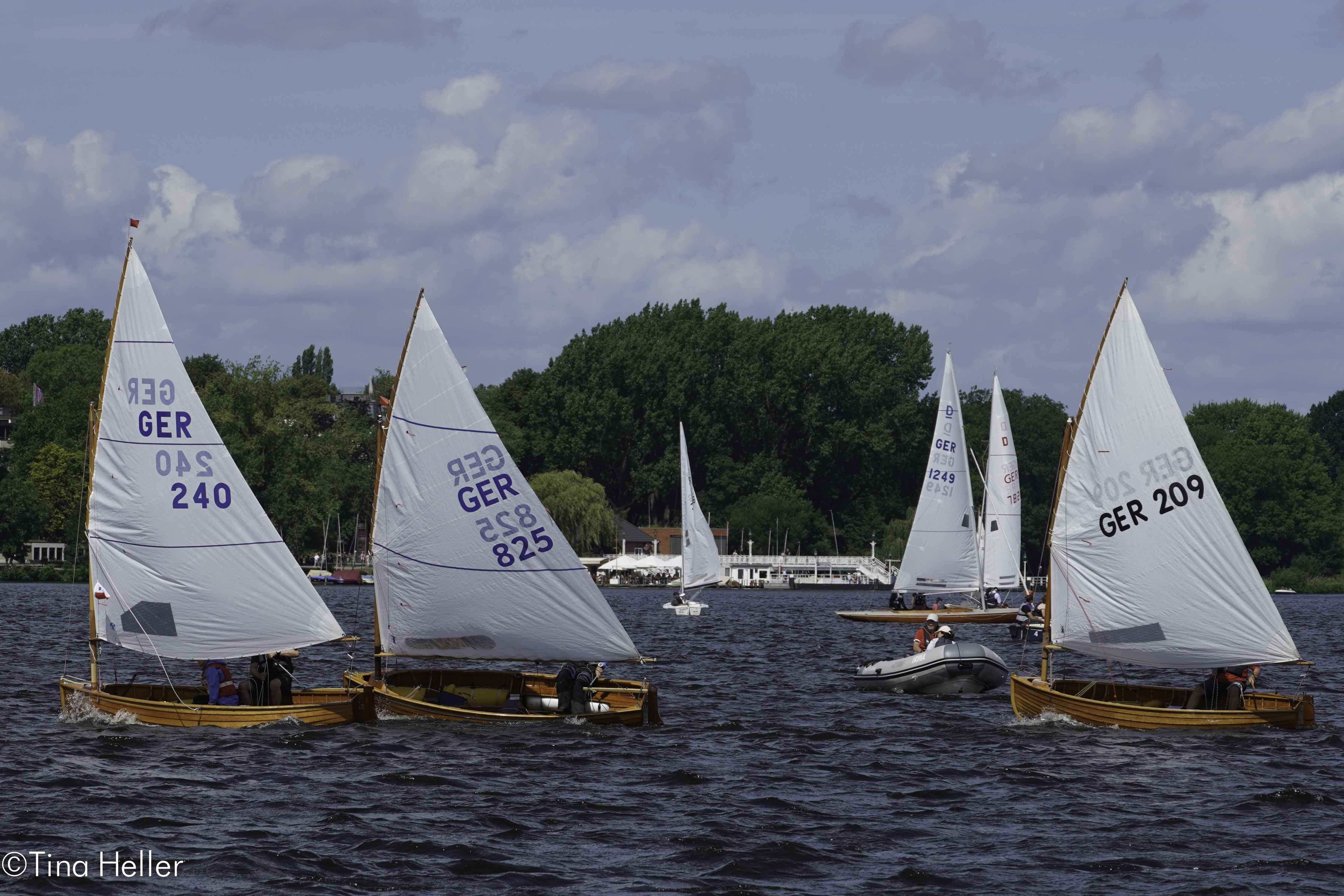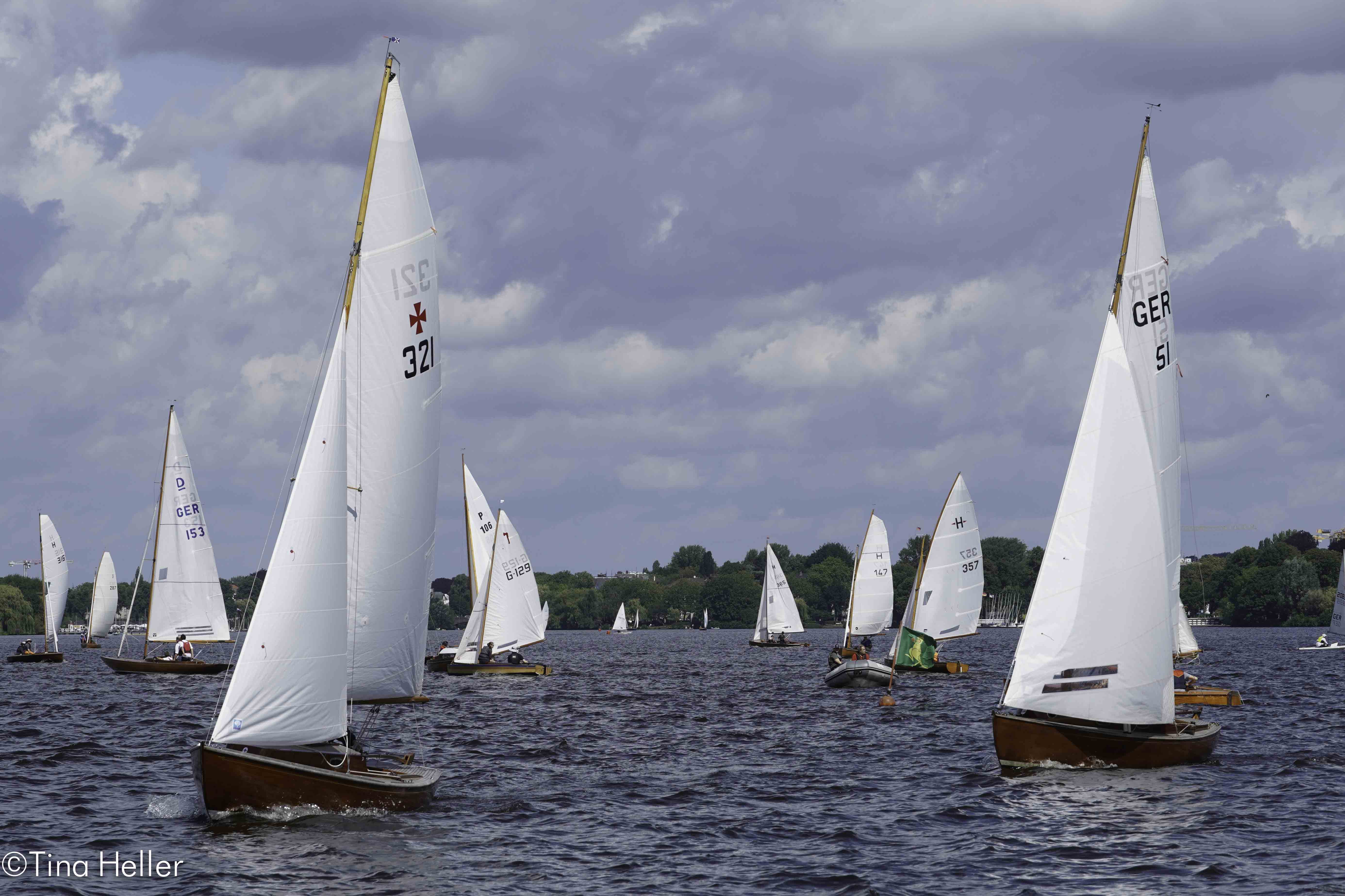 38 Meldungen gab es zur 32. Hamburg Summer Classics, der Holzboot-Regatta vom HSC. Es waren auch schon mal 60, aber seit Corona sind wir froh, dass wir knapp an die 40 werden, es kann auch wieder besser werden. Von außerhalb kamen vor allem die 12 Fuß- Dinghies aus Lübeck. Keine Sharpies am Start (hatten ihre Euro in Schwerin), nur 1 Jollenkreuzer (wo bleiben die Freunde aus Schwerin). Immerhin hatten wir 2 Hansa-Jollen und 6 Drachen dabei. 2 davon, Marotte (1. HSC, Marc Hess) und Amigo (3. NRV, Jan Maywaldt) fanden sich auch auf dem Siegertreppchen wieder.