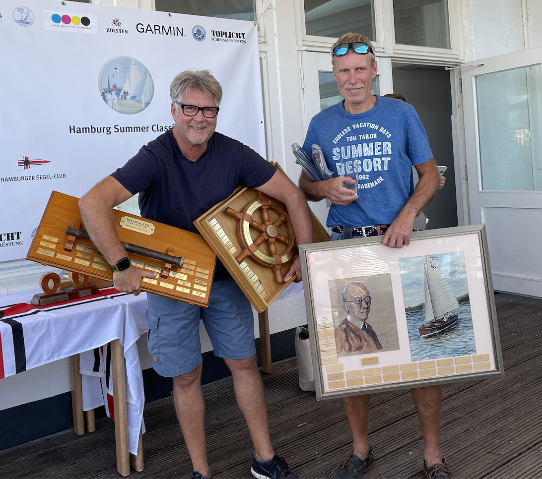 Ein anderes sehr schönes Schiff der Flotte, die Hansa Jolle Fletcher Christian von Niels Schildt bekam endlich den Restaurierungspreis, den er schon vor Jahren haben sollte, der aber wie so viele Wanderpreise verschwunden war. Die ersten Ränge brauchten Schubkarren um die vielen Sonderpreise nach Hause zu bekommen. Und nach einem letzten „Hip-Hip Hurra“ auf die Wettfahrtleitung war auch die 32. HSC Summer Classics Geschichte.