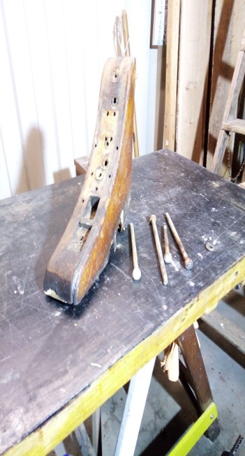 In der Wrange einen Vierkantnagel entdeckt, zum Glück vor dem Hobeln der Flächen für die Doppelung. Messer des Hobels wäre mal wieder dahin. Nagel ausgebohrt (Kerbstiftbohrer „Eigenanfertigung“ gesehen bei Folke-Boot Lilli FKY)