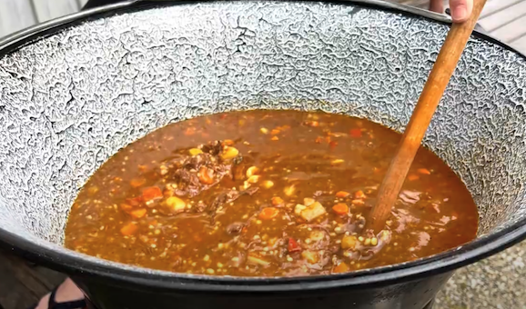 Ein weiteres Highlight hatte sich schon Tage zuvor angekündigt, welches nun wahr werden sollte. Paul, der Druide der 10er Klasse, hatte schon geraume Zeit an der Herstellung eines ungarischen Kesselgyulasch mit all seinem alchemistischen Wissen experimentiert. Nun war es so weit. Auf einem Kanonenofen, welchen er aus einem alten Wasserspeicher selbst gefertigt haben dürfte, stand ein riesengroßer Kessel, mit dem Paprika farbigen Zaubergebräu, welches seinen Geruch in die weite Umgebung und das liebliche Clubhaus des Vereins trug. Alex stellte ein stattliches Bierfass aus dem Hause Schönram auf und es ging schon wieder los. Die Segler machten sich ran, den Kessel und das Fass von dessen Inhalt zu leeren.