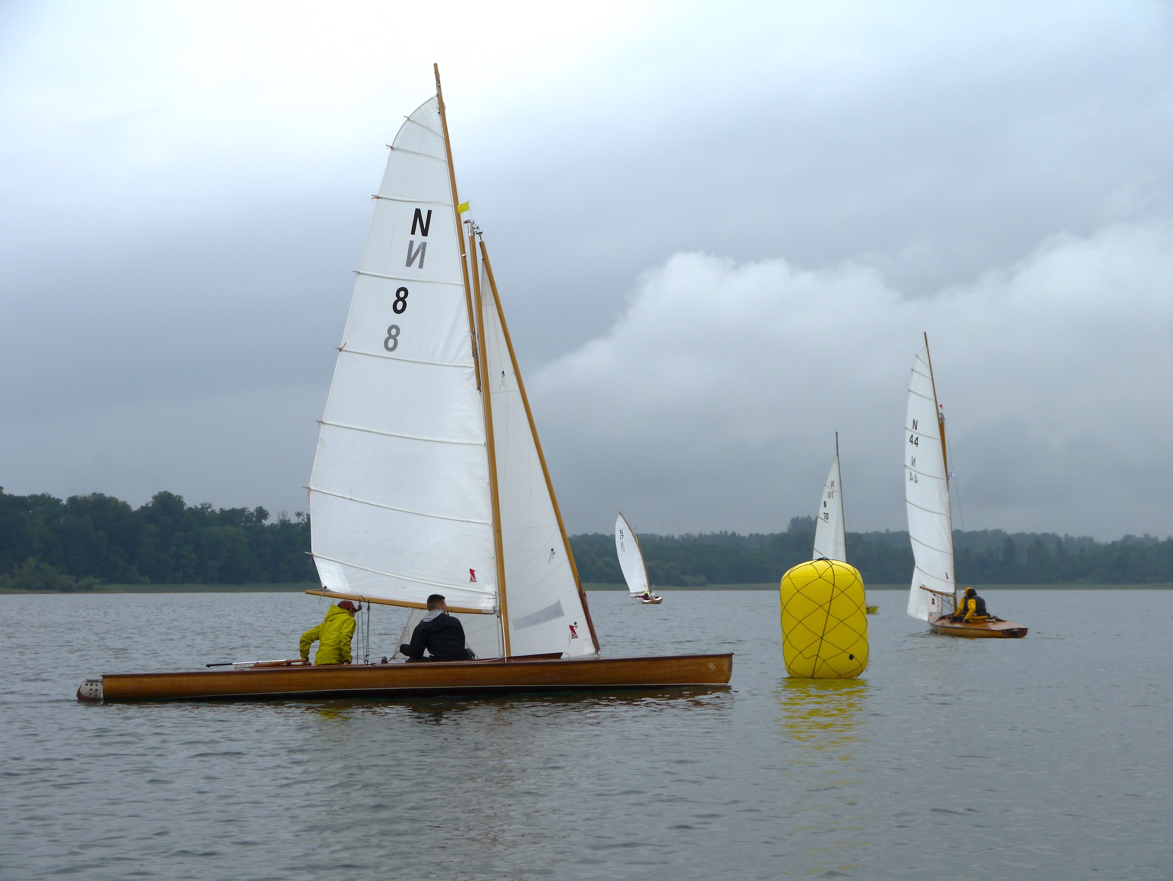 Auch am Chiemsee hatte sich über Nacht starkes Regenwetter bei kaum Wind eingestellt, sodass der folgende Tag die Erwartungen auf weitere Wettfahrten stark trübte. Die Teilnehmer nutzten daher den Vormittag zur Abhaltung der jährlichen Generalversammlung. Ein diktatorischer Vorgang, auf den ich mich aufgrund meiner jahrelangen Routine darin eigentlich gar nicht mehr vorbereiten muss. Diesmal stand auf der Tagesordnung, einen Weg zu finden, Paul zu überzeugen, künftig auch Besitzer einer 10qm Rennjolle zu werden. Ein dafür geeignetes Boot war uns bereits bekannt und so wurde einfach ein „Sondervermögen“ aus der Klassenkassa aktiviert, um dieses Vorhaben zu ermöglichen. Der Plan ging auf und unser Dank geht hier auch an Rafael Berleb, der ohne darüber zuvor informiert gewesen zu sein, bereit war, sein „ZEHNERL“ N 387 an Paul zu verkaufen. So bleibt das sehr schöne Boot auch im Revier der Bayrischen Seen erhalten und Raphael kann uns auch weiterhin als wertvoller Segelkamerad für die Klasse begleiten.