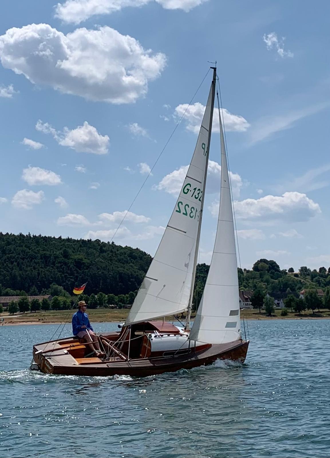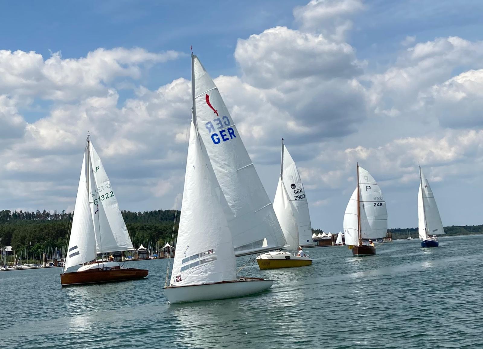 Bei sommerlichen 27 Grad, lebhaftem Wind und gelegentlichen Schatten spendenden Wolken schickte der Yacht-Club Nürnberg die Flotte klassischer Holzschiffe auf die sechsstündige Langstrecke rund um den Großen Brombachsee. Die Bedingungen waren anspruchsvoll: Der Wind zeigte sich launisch mit unzähligen Drehern und legte zum Finale mit Böen bis 18 Knoten noch einmal ordentlich zu.