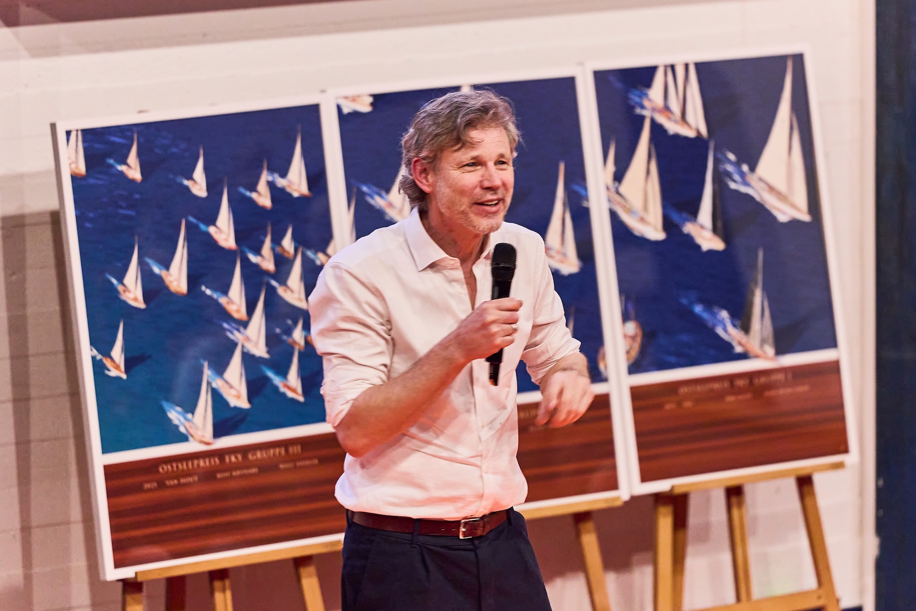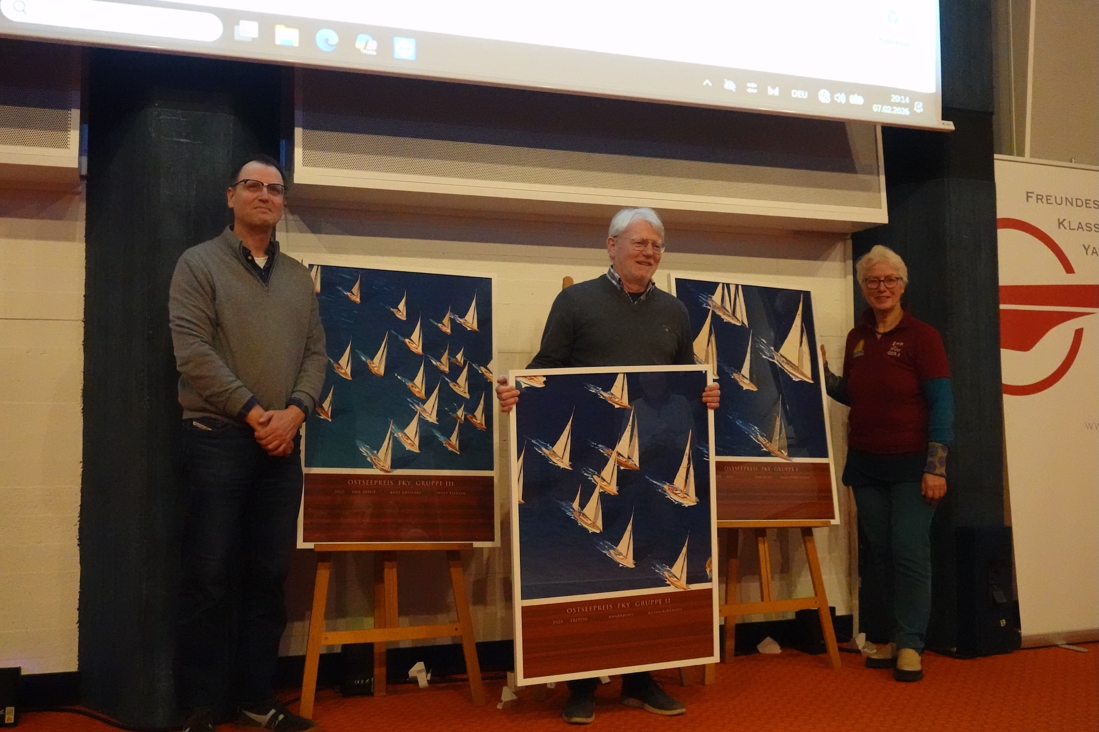 Nach dieser Reise in die Nacht die erste Preisverteilung: Dana Göbel und Hinnerk Bodendieck stellten den Ostseepreis und seine Gewinner vor. Drei tolle Bilder von Hinnerk, auf denen die Siegeryachten und andere Teilnehmer dargestellt wurden, ein großes Stück Arbeit für den Künstler, nächstes Jahr folgen die Leuchtkästen.