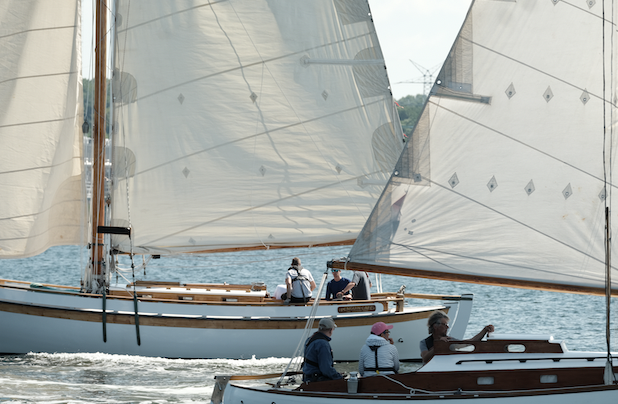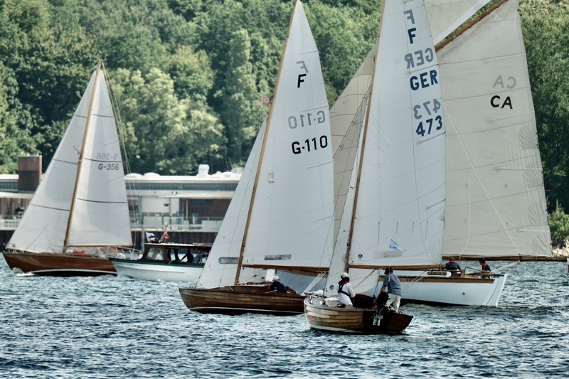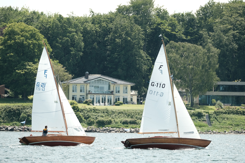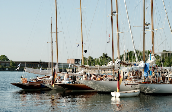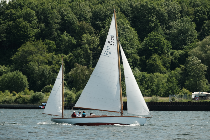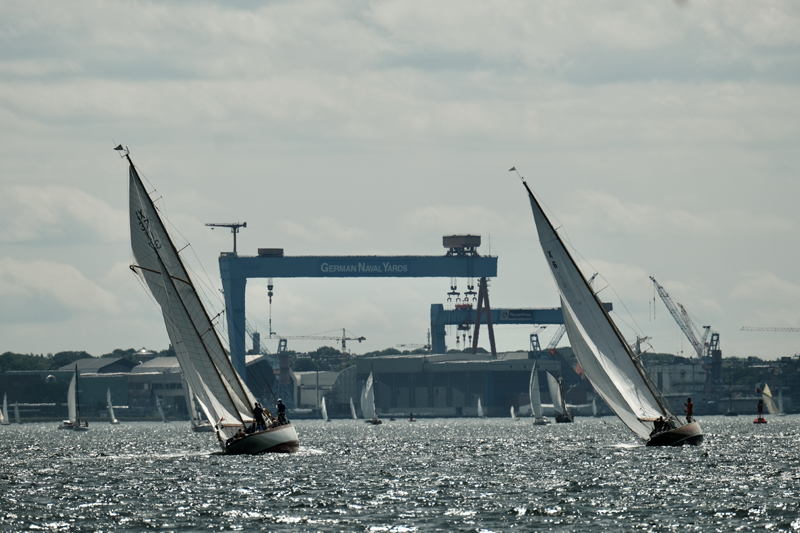 30 klassische Schönheiten waren dem Ruf zum Auftakt in der Werfhalle von Henningsen & Steckmest gefolgt und so konnten ca. 90 Teilnehmer das leckere Grillbuffet von Norbert Starck bei Livemusik und wunderschönem Sommerwetter genießen. Nach dem Frühstück starteten die Yachten am Freitag bei lauen Winden gen Schleimünde, wo Wettfahrtleiter Hans Freiwald das Feld in 2 Gruppen auf die Zubringerregatta nach Kiel schickte. Leider schlief der Wind am Nachmittag fast vollständig ein , so dass aus der Startgruppe 1 nur ein einziges Schiff, die Anita, die Zieldurchgang vor dem Zeitlimit um 18:00 schaffte. Aus der Startgruppe 2 konnten mit einer Ausnahme alle gestarteten Schiffe das Rennen vor Stickenhörn beenden.