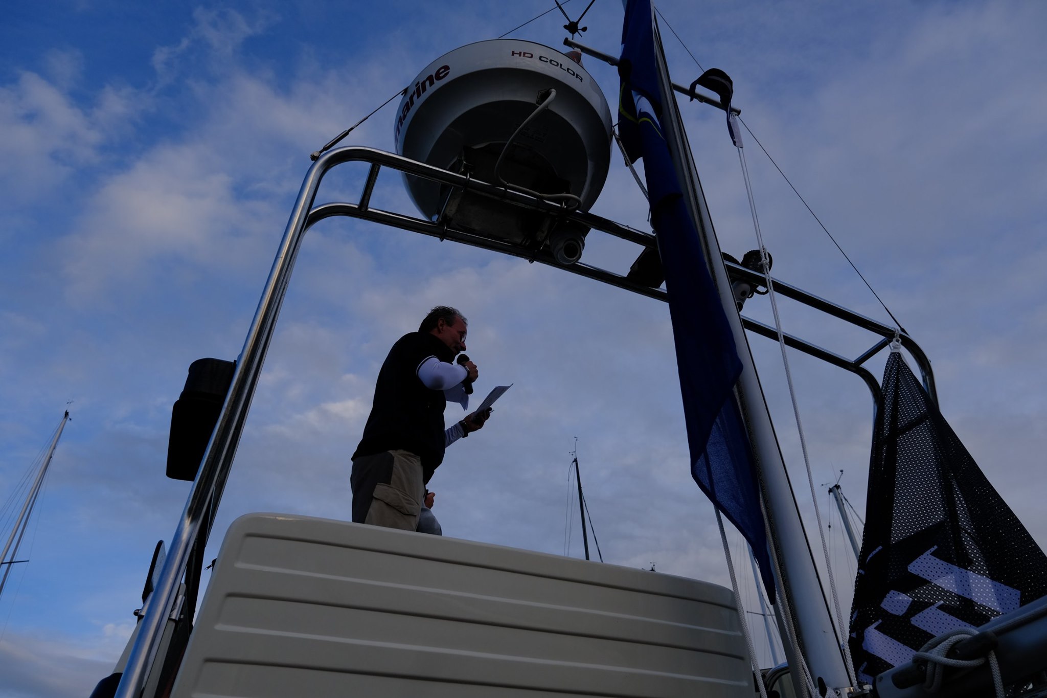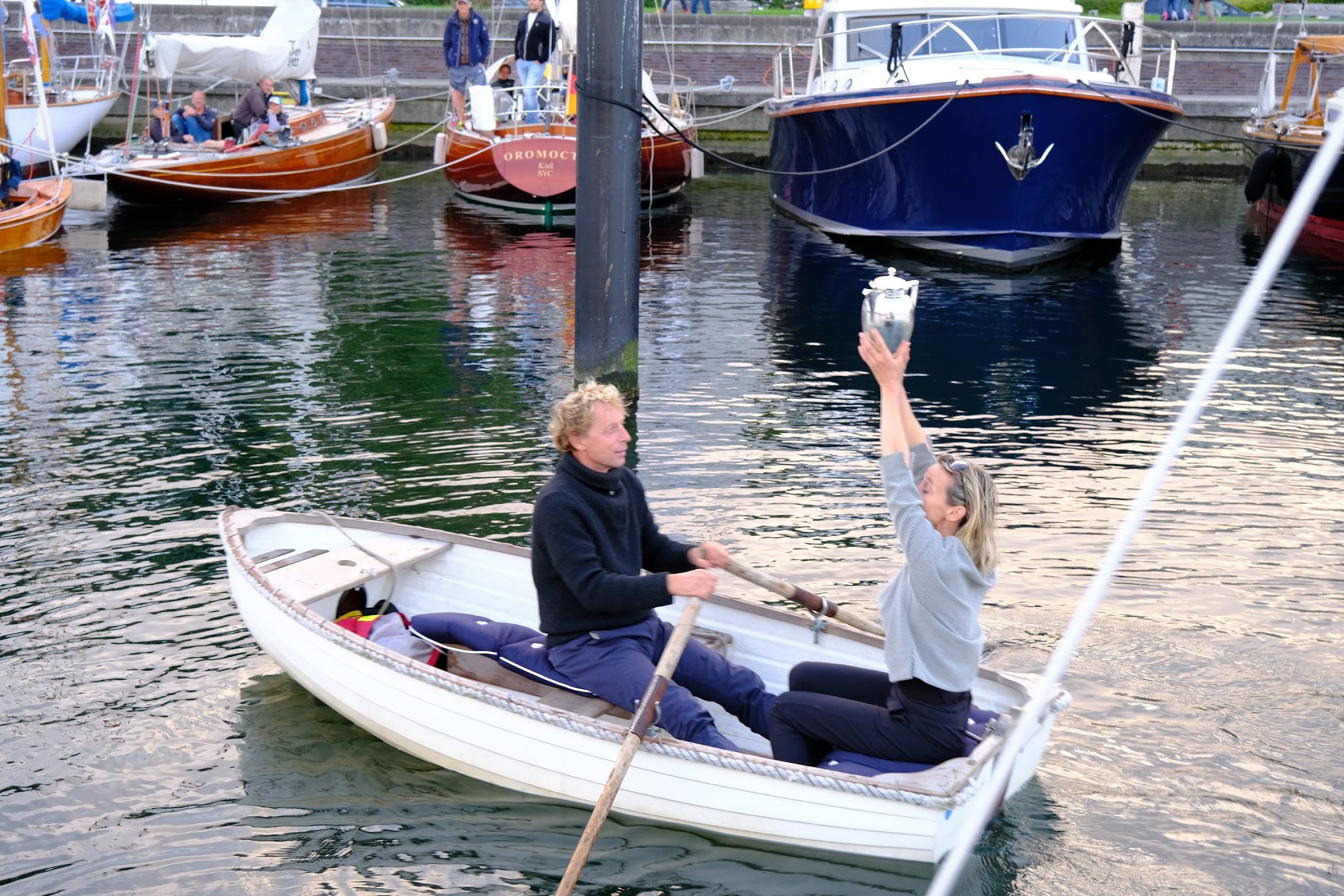 Die Preise wurden übrigens per Ruderboot von Christoph von der in die Hafenmitte verholten Motoryacht der Wettfahrtleitung zu den Preisträgern gebracht.