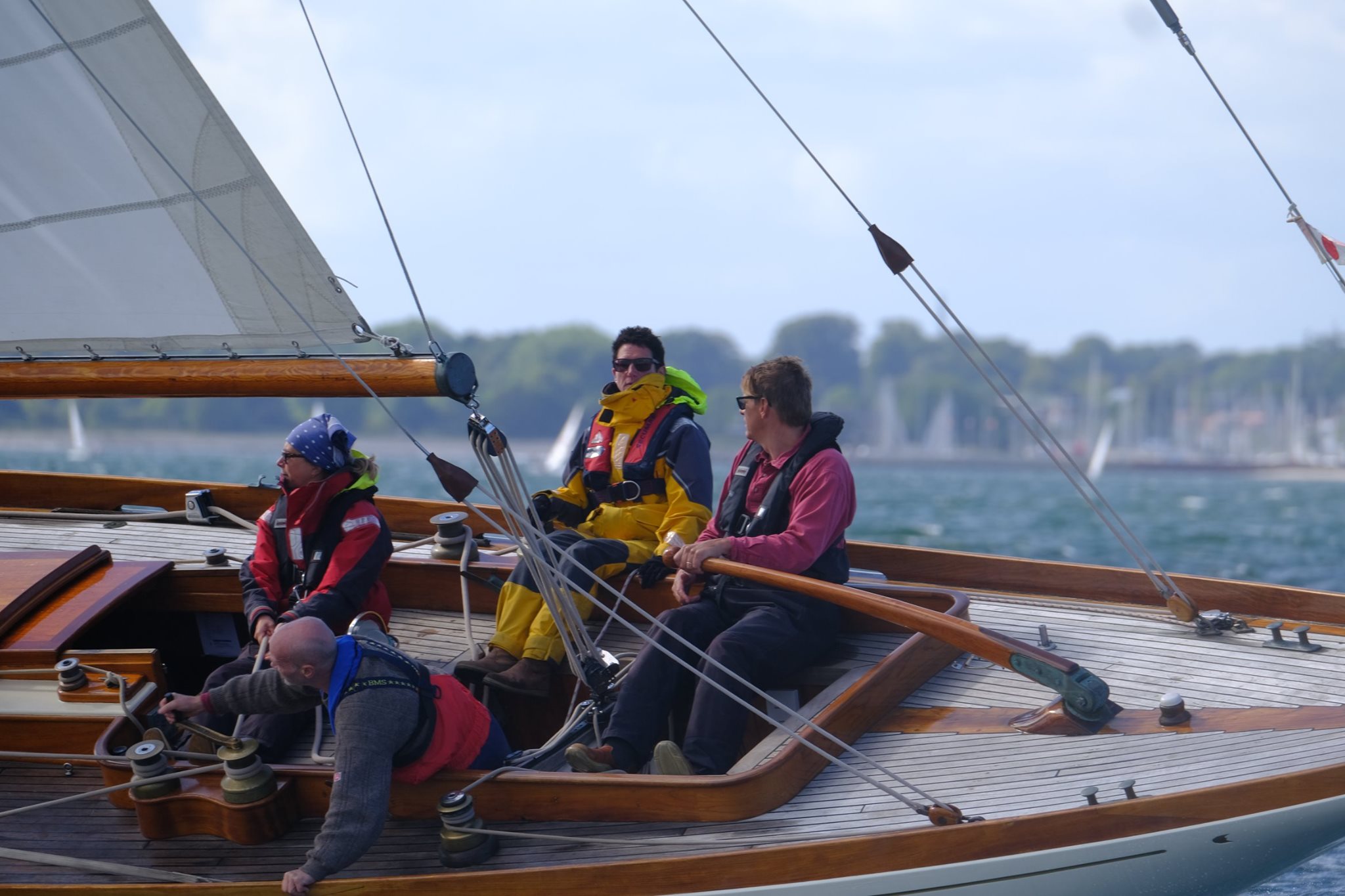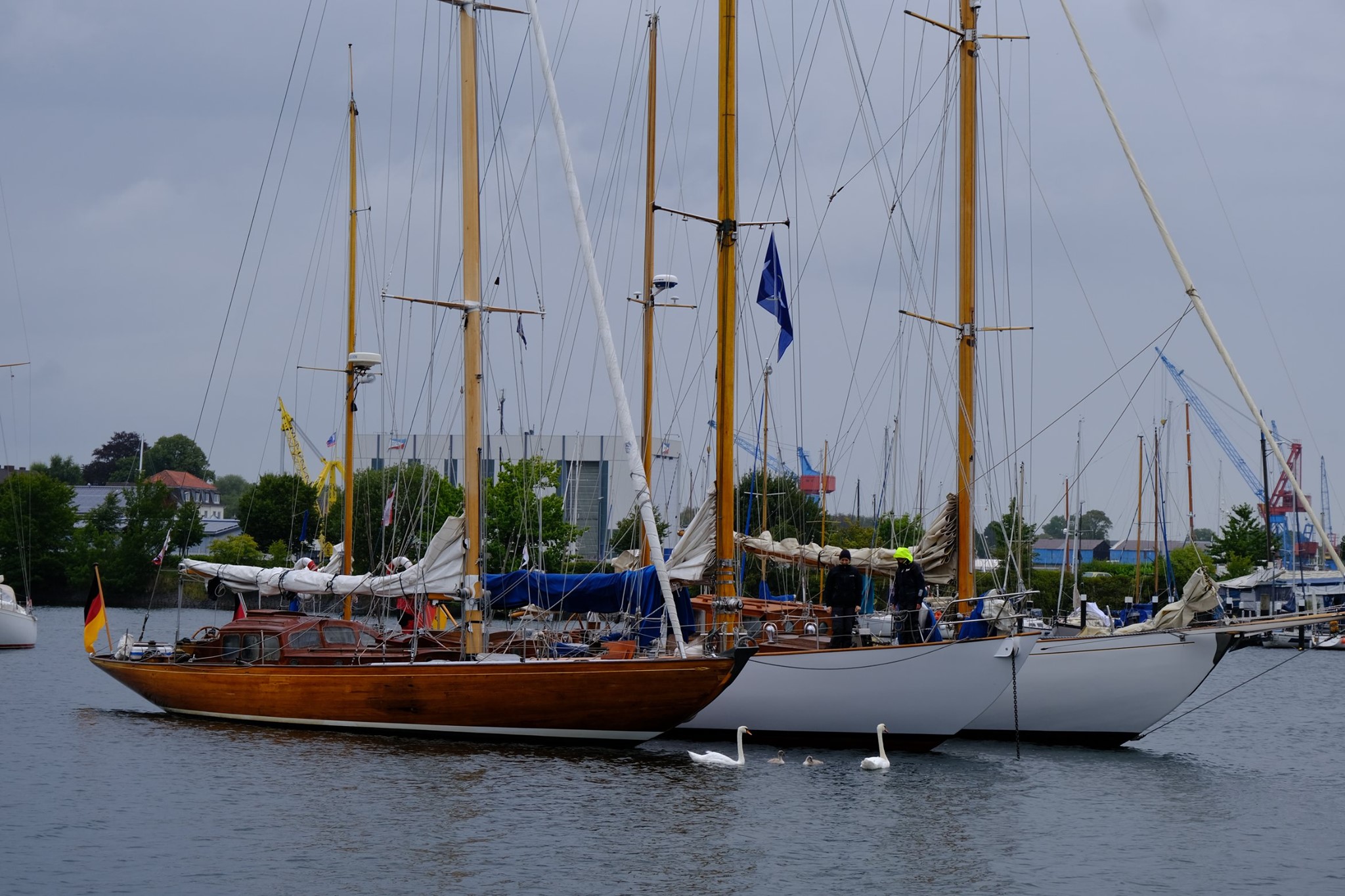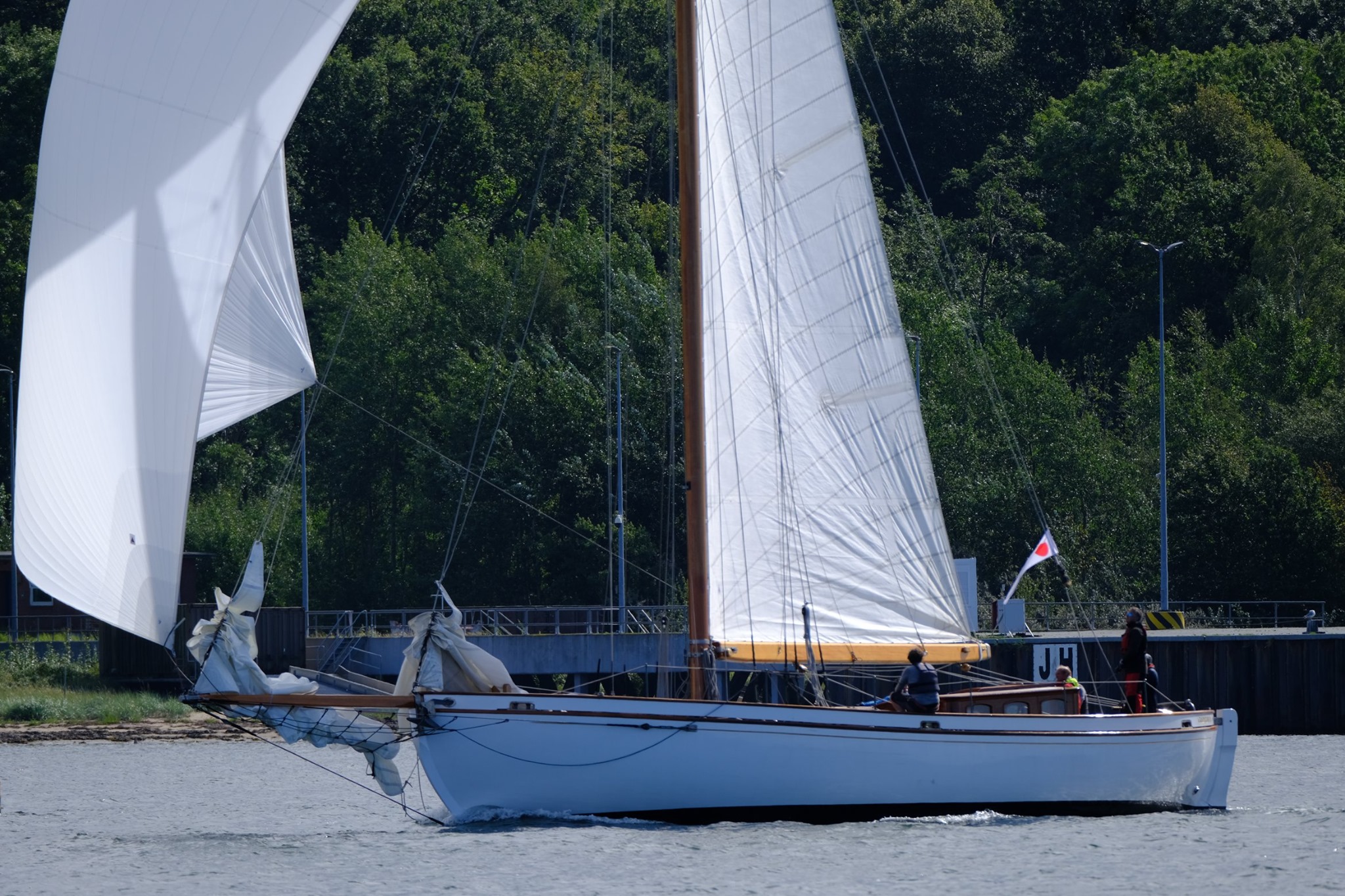Endlich mal wieder eine Klassiker-Regatta auf der Kieler Förde! Dazu die hier üblichen Bedingungen, mal Sonne, mal Schauer, wechselnde Windrichtungen mit Böen bis 6.
