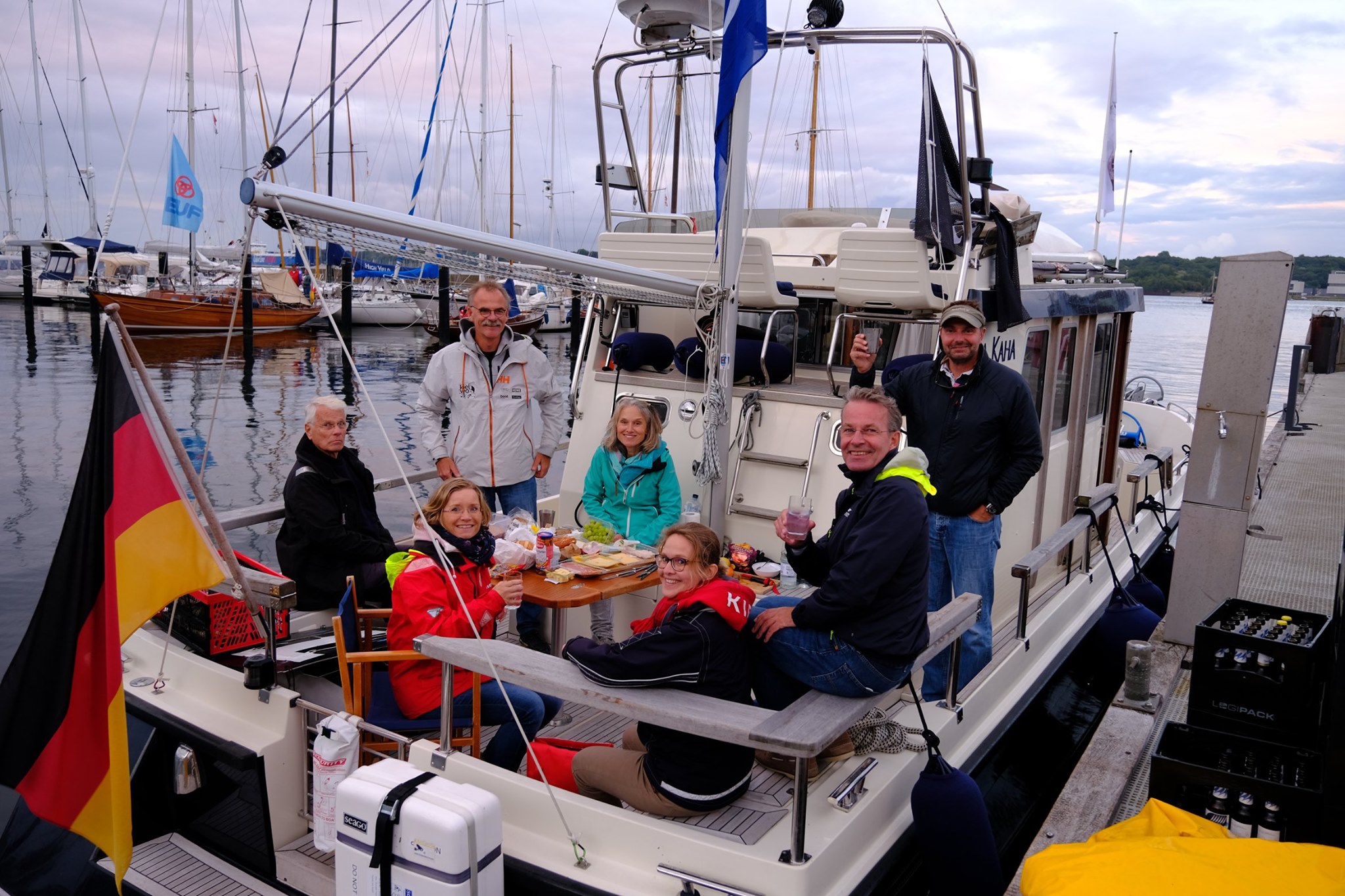 Eine schöne Idee aber soll noch erwähnt werden: Für Yachten, die sich zur Regatta von entfernteren Revieren gemeldet hatten und daher schon am Tag zuvor anreisten, wurden Ankerplätze in der Stickenhörn-Bucht vor dem Areal des ehemaligen Britischen Yachtclubs organisiert - inklusive Brötchenversorgung zum Frühstück. Schöner kann der Tag nicht beginnen…