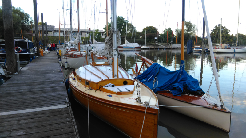 Diesmal mit auf dem Steg reichlich maritime Expertise, untermalt von munterem Klönschnack und - viel zu kurz - wunderschönen Klängen der akustischen Gitarre vom 20iger Jolli CIRRUS. Mit am Steg die frisch restaurierten Größeren: die GAY GALLIARD, eine 9,6m Morgan Giles Sloop vom Typ West Channel Class, Bj.1952 und die Elb-Bekannte, 13m messende STURMVOGEL, 1925 gebaut bei Jepp in Kiel auf einer ihrer ersten Ausfahrten nach mehr als 16 Jahren an Land.