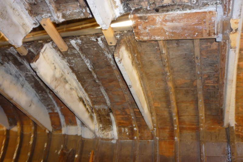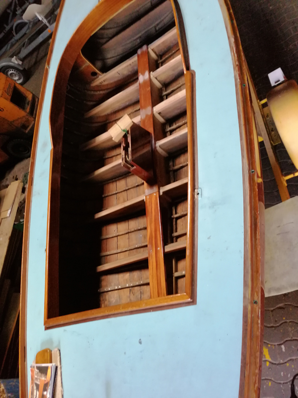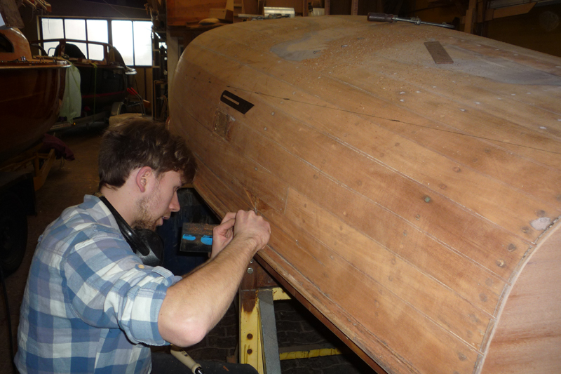 Da der SVW ja schon einmal Erfahrung mit der Restaurierung eines solchen Bootes gemacht hatte , traute er sich den Erhalt dieses hölzernen Zeitzeugen zu und wollte möglichst viel in Eigenarbeit dazu beitragen. Nach dem das Boot von den Einbauten und Beschlägen befreit war, ging man teilweise daran, das Unterwasserschiff und die Außenhaut von der Epoxibeschichtung zu befreien. Dabei stellte sich heraus, das doch mehr erneuert werden musste, als ursprünglich zu erkennen war.