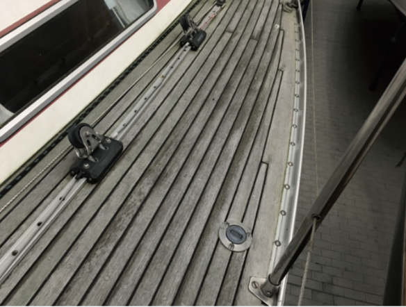 Nun gibt es viele Boote, die nicht nur ein Teakdeck besitzen, sondern dazu auch noch viele lackierte Flächen und Teile. Bei vielen mit dieser „Doppelbelastung“ wird zuerst das Teakdeck vernachlässigt: schwarz wie die Nacht, grün von Moos, ausgewaschene Fasern mit Bergen und Tälern, fehlendes Dichtungsmaterial.