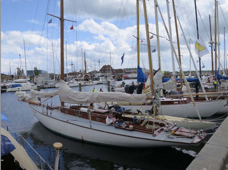 Der frühe Morgen fand das Fahrwasser zwischen Lyö und Svendborgsund gespickt von den Spis der alten Ladys, die den Kirchturm von Taasinge anpeilten. Im Hafen waren wieder die besten Liegeplätze um den Fischimbiss an der Hafenecke für die Klassikerflotte reserviert.