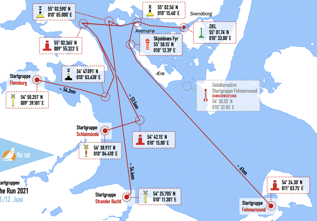 Die Regattakurse für die Startgruppen entsprechen den Kursen von 2021: