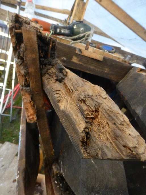 Es kommt aber wie es immer ist: Wird erst mal ein Loch aufgemacht findet man das nächste und das nächste……..Stück für Stück kommen 95 Jahre altes „Holz“ zum Vorschein.