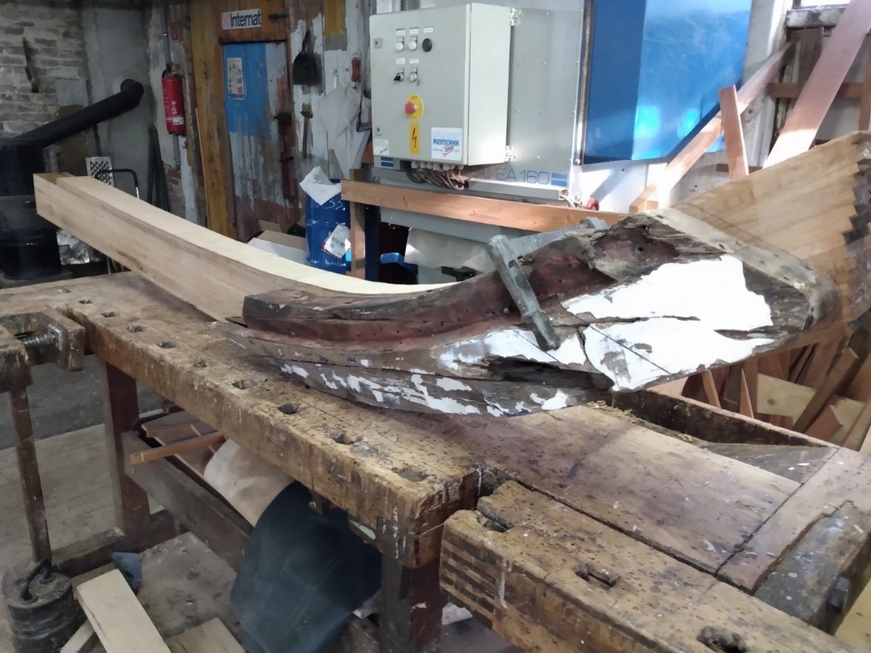 Der Vordersteven hatte ein „Knick“ bekommen und die maroden Stellen zeigten sich unter dem jahrelang sorgsam gepflegten Lack.