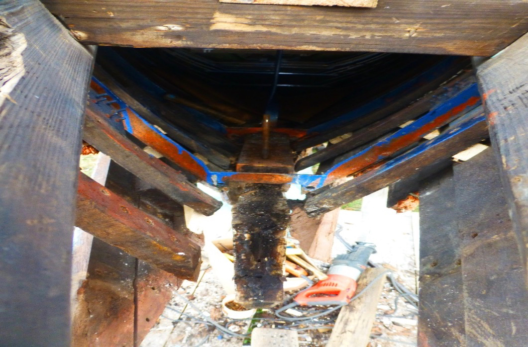 Gut abgestützt wartet das Boot auf die neuen Bauteile: