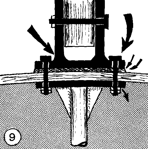 Beschläge: Durch die Bolzen-Bohrungen dringt Wasser ins Holz, das an diesen Stellen morsch wird.